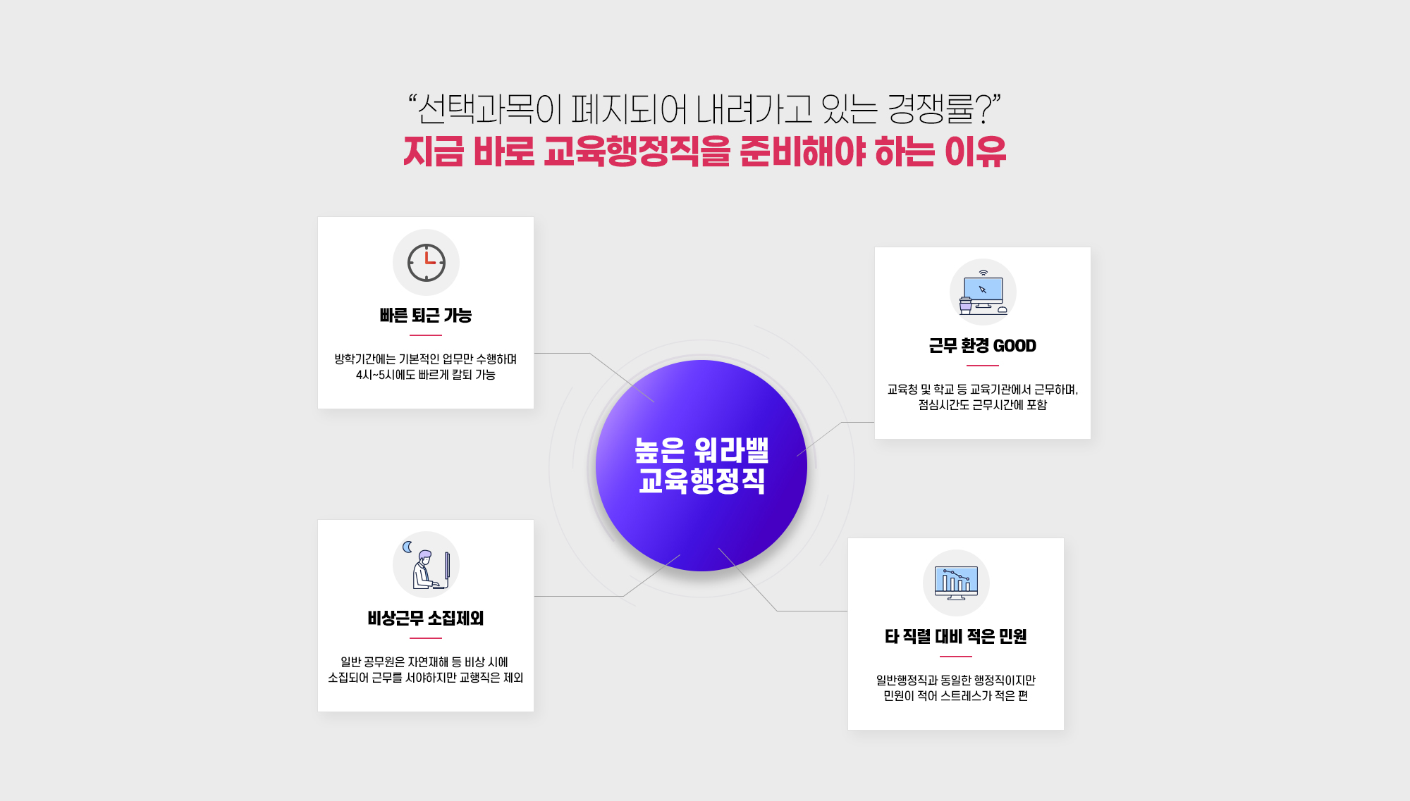 • 공무원ㆍ대기업 취업을 위한 진로를 탐색하고 설정하는 것부터 성공적인 취업준비까지 각 단계별로 맞춤 코칭, 다양한 학습 컨텐츠 제공